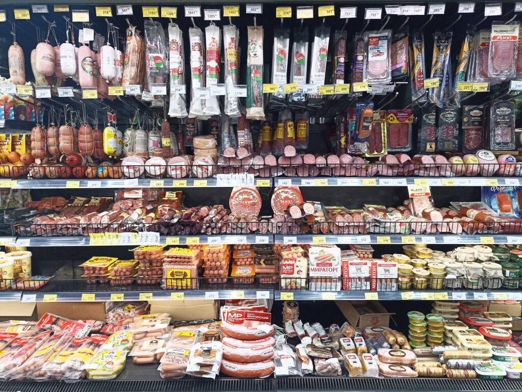 - Foods included sausages, hot dogs, bacon, and deli meats.